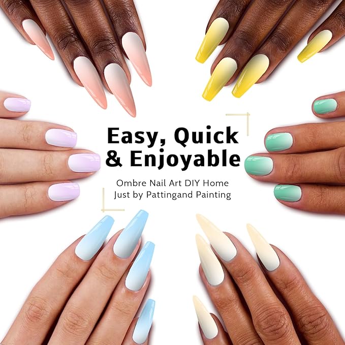 - 【EASY USE:】All steps are the same as normal UV/LED nail gel: 1.Clean and Prep; 2. Base coat and cure. 3. Apply color gel and cure. 4. Top coat and cure. 5. Clean nails and apply oil. Karroy ombre painting nail gel is easy to use: just grabbing a sponge and picking up your desire color, and patting sponge on your nail, you will get wonderful gradient coloring nails!