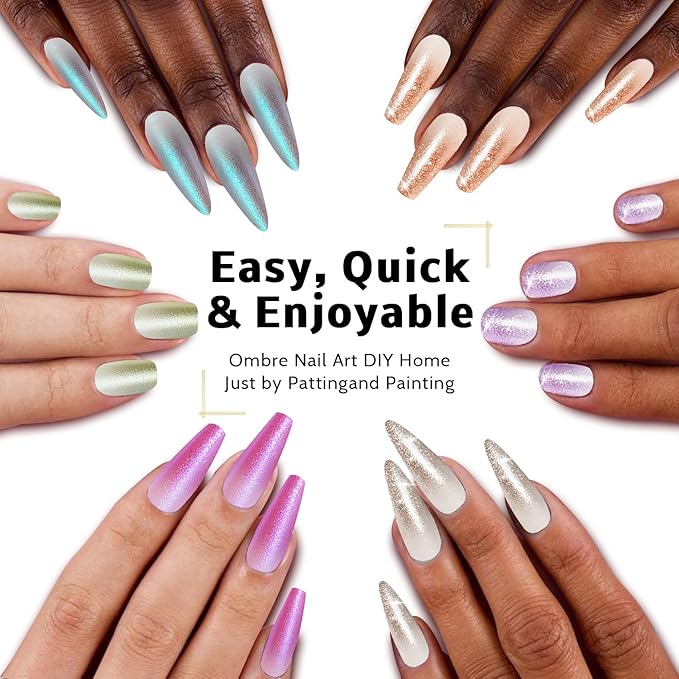 - 【WARM TIPS:】The solid nail gel need to be cured under UV/LED light. For a seamless gradient, lightly dab the sponge onto your nails. Avoid pressing too hard, as this can create an unnatural look.