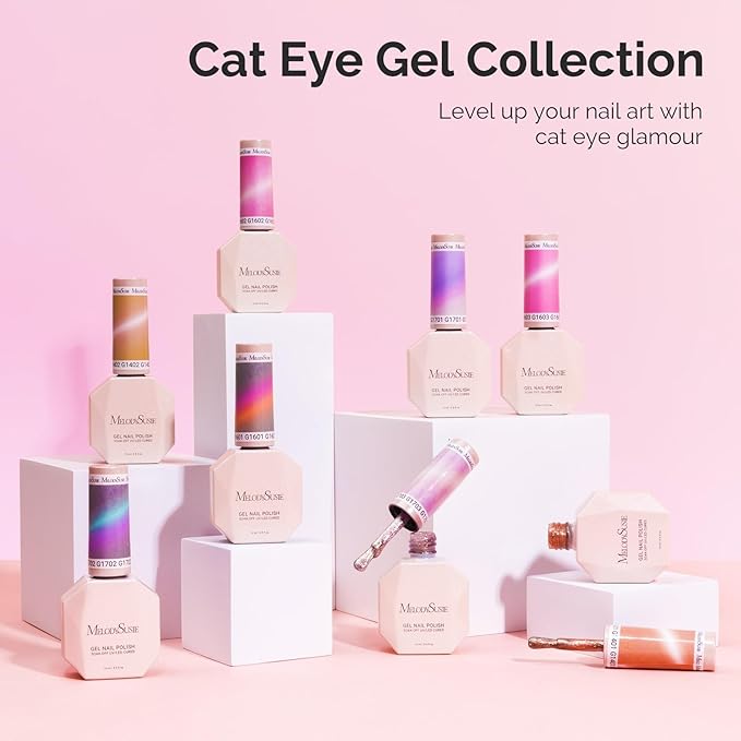 - CREATIVE & FASHIONABLE MANICURE: Whether you're a beginner or a professional, you can unleash your creativity to make the nail art you want with cat eye gel of different textures and colors. Formulated with healthy ingredients, our gel nail polish minimizes nail damage and keeps unpleasant odors at bay. Revel in vibrant, long-lasting results while prioritizing your nail health and application experience.
