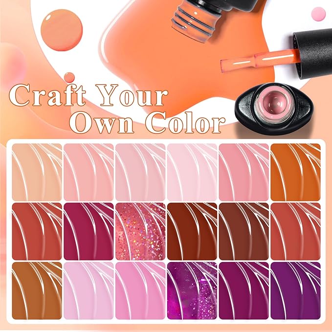 MTSSII Jelly Gel Nail Polish Set 18 Colors, Pink Red Purple Glitter Translucent Sheer Soak Off UV Gel for Nail Art DIY Manicure and Pedicure at Home