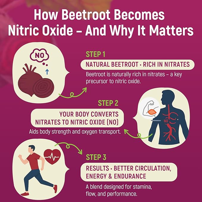 - Nitric Oxide Booster: Each serving combines organic beetroot, naturally rich in nitric oxide, with black pepper extract for absorption