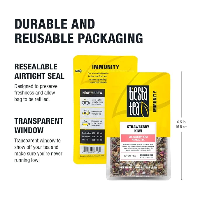 - RESEALABLE, REUSABLE BULK TEA POUCH: No matter where life takes you, Strawberry Kiwi Herbal Tea is there to refresh you. Whether you’re at home, at work, or on-the-go, enjoy this delightful, fruity blend in a bulk pouch, sleek tin, or portable pouch—perfect for satisfying your cravings whenever and wherever you need a burst of flavor.