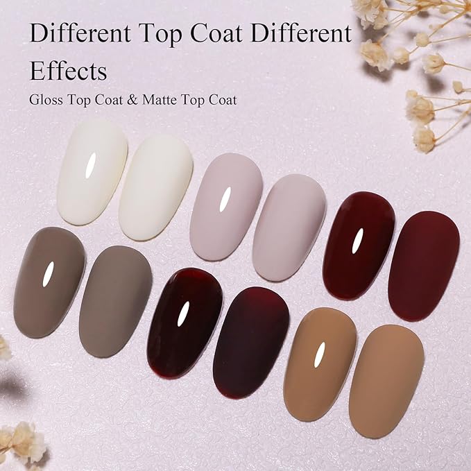 10ml Hema Free Fall Gel Nail Polish Set 6 Colors Beige Brown Nude Chocolate Gel Nail Polish Kit Soak Off Nail Art Salon Home DIY Gift for Women