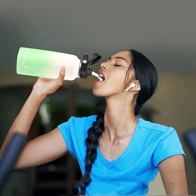 - 【EASY TO USE】Lid with handle AND pouch for easy carrying. While sitting anywhere in any temperature condition, 32oz this volume is enough for your daily hydration.3 lids can be switched at any time, the Spout Lid is perfect for the beach, camping, the straw lid fit for office and hiking, And the powder coating exterior finish ensures a better grip, and its wide-mouth opening makes your ice or fruits filling and cleaning easy and fast
