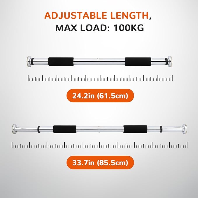 - Adjustable & Durable: Extendable rod can be adjusted to fit inside of doorframes between 24”-33”; Holds up to 220 pounds