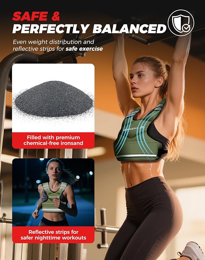 - Breathable & Comfortable: Made with premium neoprene & soft iron sand fill, this weighted vest for men and women ensures even weight distribution and a secure fit during high-intensity workouts. The extra-wide padded shoulder straps reduce pressure, while elastic bands provide full mobility without restriction