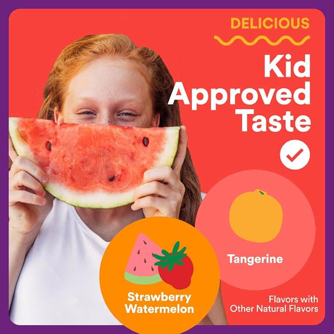 - DELICIOUS TASTE & KID-APPROVED: Strawberry Watermelon and Tangerine Flavors with Other Natural Flavors. Kids 4 years and older now take 2 gummies daily. May be taken with or without food. Chew each gummy thoroughly.