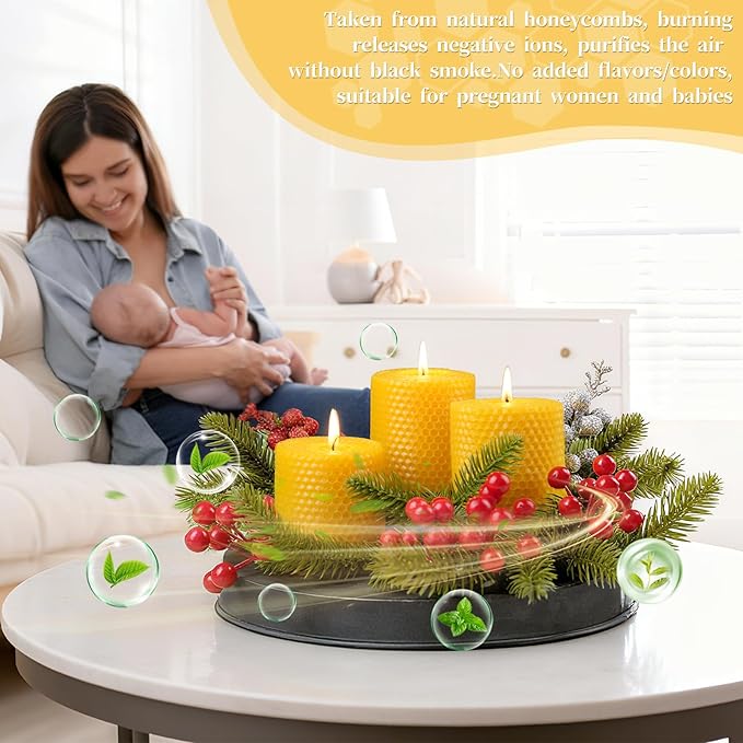- Sustainable Beeswax Candles Choice:Hand-Rolled Beeswax Candles are made of premium natural beeswax.when burning,they release natural honey scent,negative ions,which can neutralize dust,allergens in the air,clean the air,good for people with allergies or asthma,helps people stabilize their emotions,concentrate and restore their physical strength.Whether it is for yoga,meditation,reading or a quiet night,these beeswax candles can add a sense of tranquility and warmth to your space