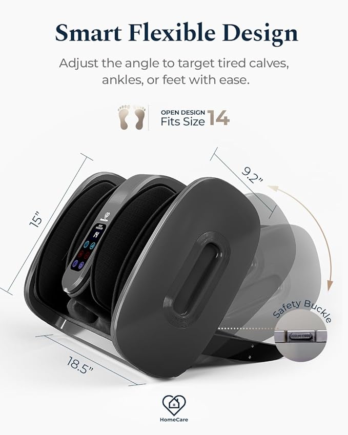 - Satisfaction Support(High-Quality Support): Homecare’s US-based team provides lifetime technical support and warranty. Each Homecare foot massager machine is FCC and CE safety certified, it ensures peace of mind with your purchase. If any issues arise, customer support is ready to assist with repairs or replacements.