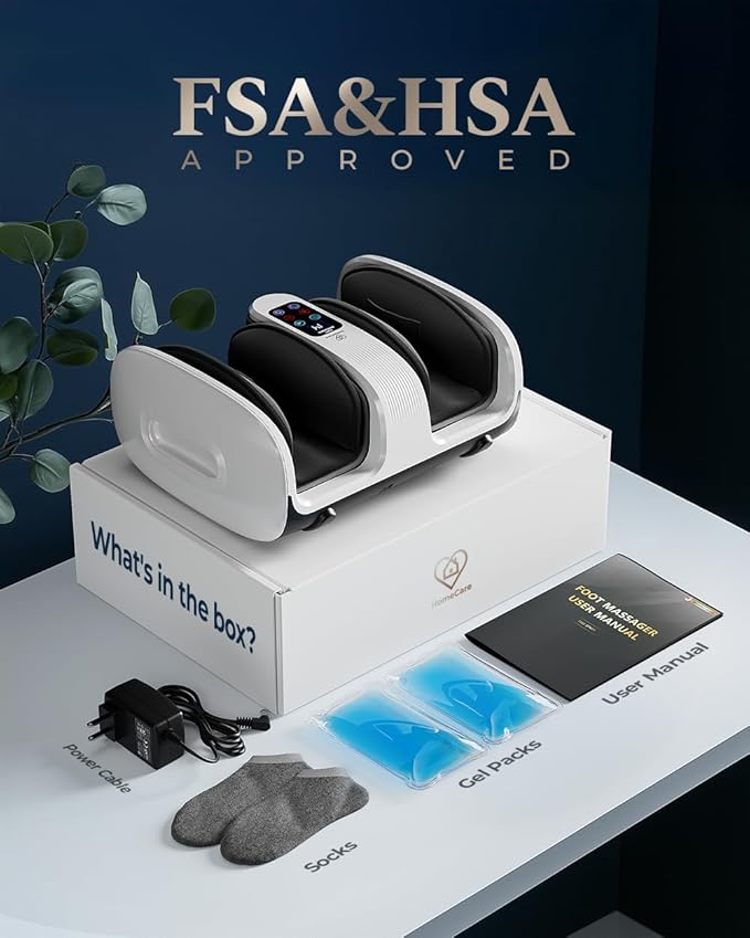 - FSA HSA Approved Item: High-Quality Support, The casing of this foot massager is extremely sturdy and durable, with a high-quality feel. It is an FSA HSA Eligible-approved product. If you have any questions or suggestions about our foot massage machine, please feel free to reach out. Our professional customer service team is here to assist you