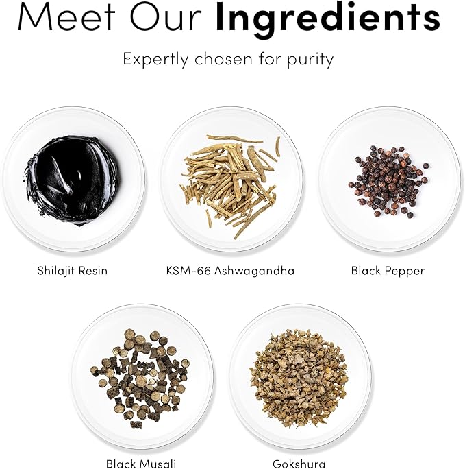 - Enhanced Bioavailability: ShilAbsorb technology with black pepper extract; formulated for 3.5x higher absorption than standard shilajit resin; maximum nutrient delivery