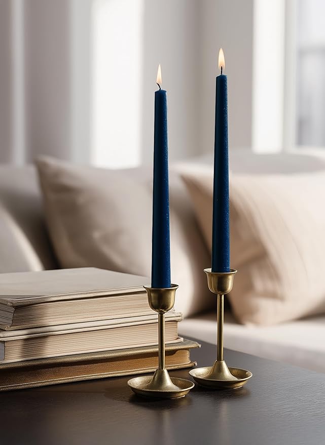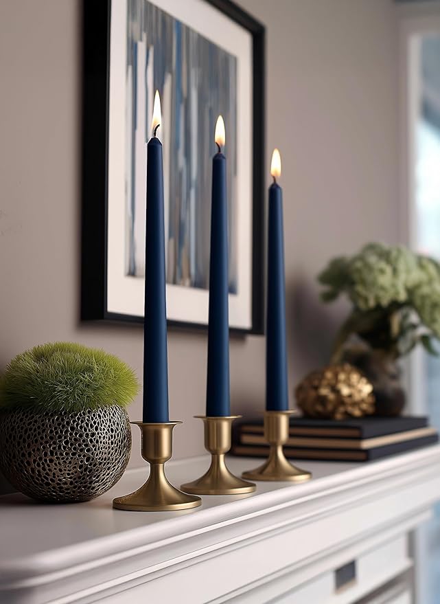 6 PK 10" Classic Taper Candles, Navy Blue, 7-8 Hours Long Burning, Unscented Tall Candlesticks