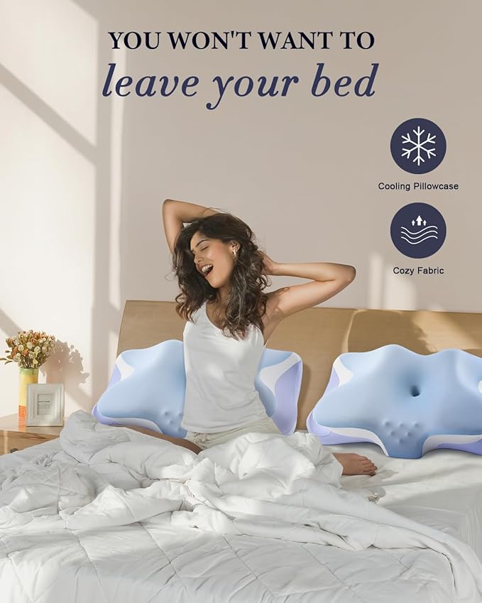 - 【Luxury Anti-pilling & Cooling Pillowcase】This cervical neck pillow is equipped with a luxury ice silk stretchable pillowcase, offering a cool and breathable sleeping experience. The comfy and skin-friendly fabric provides a cloud-like softness, keeping you cool and comfortable throughout the night—ideal for hot sleepers and warm summer evenings. Crafted from high-quality material, the pillowcase is resistant to pilling and maintains its freshness even after repeated use.