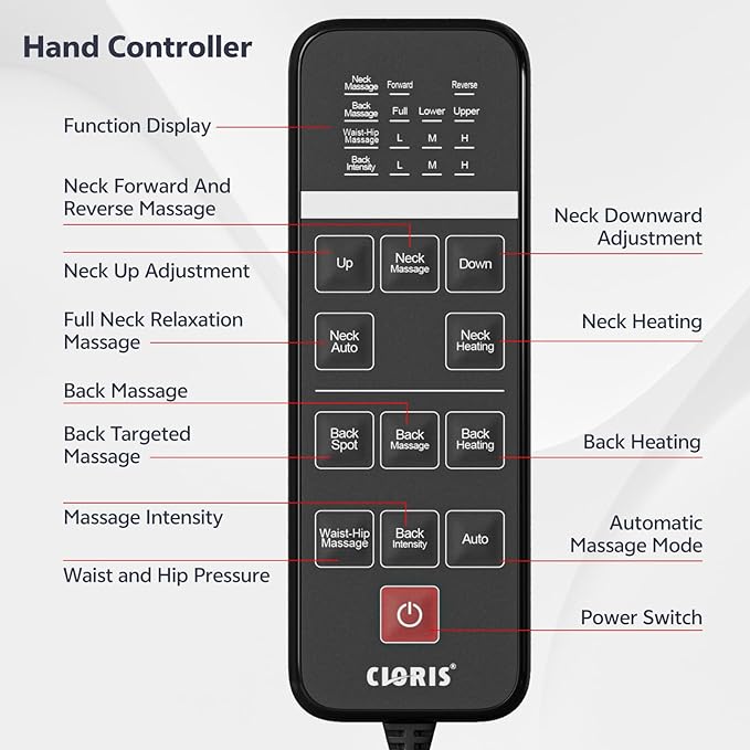- Rolling Back Massage: Four massage nodes with heating and 2D/3D finger pressure shiatsu massage roll massage along the back spine combats across the whole back, of course you can also concentrate in a regional massage such as full back, upper or lower back.