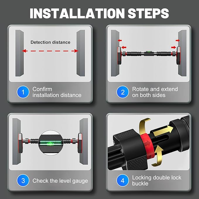 - Wall-friendly design: This door frame fitness bar avoids wall damage with the no-drill installation, providing a secure fit without the need for permanent fixtures