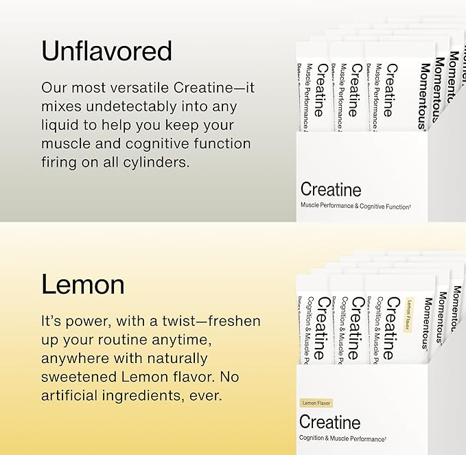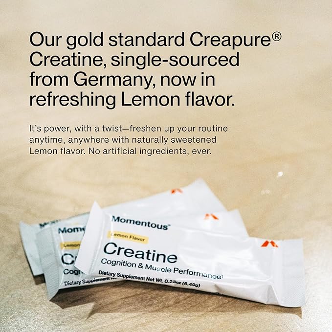 - New Naturally-Flavored Lemon Creatine - Gold-standard Creapure in refreshing, lemon-flavored single-serve packs designed for brain & body performance, anywhere you go - just add water & shake.