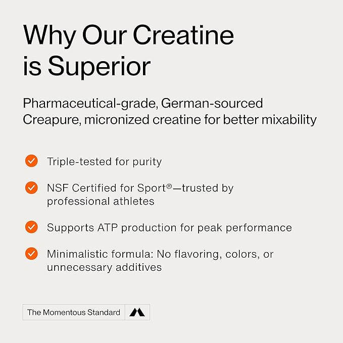 - Build Lean Power - Help elevate your workout results with Momentous Creatine Powder for men & women. It helps enhance post-exercise protein synthesis, fostering the growth of lean muscle mass & quicker recovery times. Excellent solubility & zero taste.