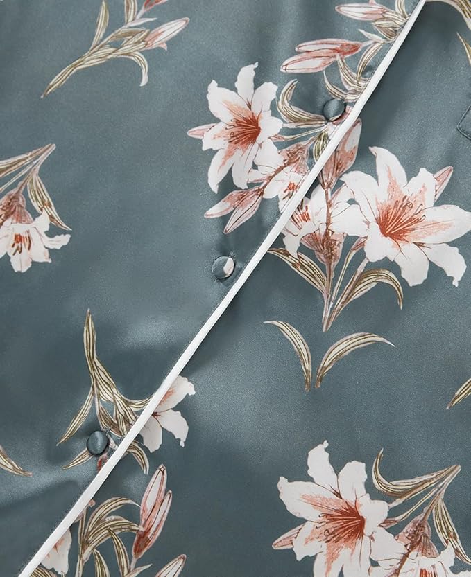 - Features: The silk sleepwear designed classic notch neck button front shirt top with chest pocket. And the short has comfy elastic waistband and adjustable drawstring and the loose fit and cozy style with beautiful detail that you can style from day to night.