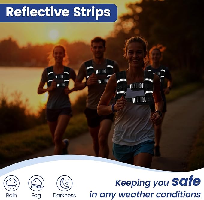 - REFLECTIVE STRIPS - Our weighted vest has reflective strips on the front and back to increase your visibility in low light conditions. Greatly improve the safety of your night running or night riding.