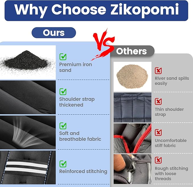- PREMIUM MATERIAL - Our strength training weight vests durable neoprene fabric and iron sand weights, as well as a stronger double-stitched design, our strength training weighted vests are built to withstand hundreds of different workouts.