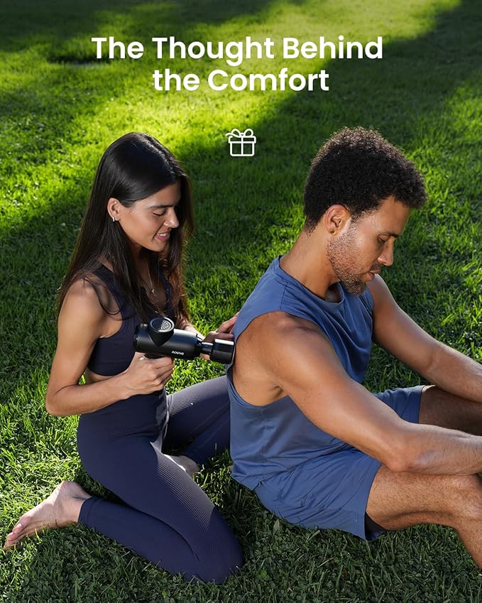 - Peaceful & Effortless: The deep tissue massage gun features a brushless motor that works harder, longer, and quieter—at just 40 dB. Relax better and recover faster with the ergonomic design to reduce stress on your wrists and hands