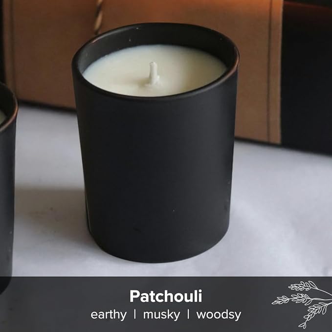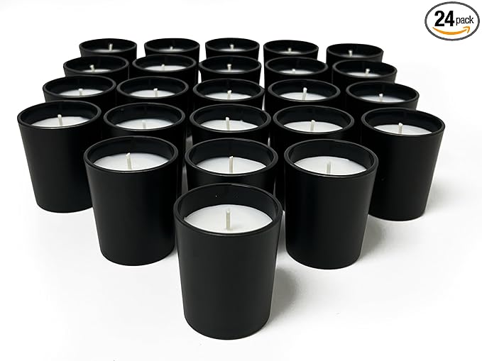 Simply Soson Scented Votive Candles, Bulk Set of 24 White Patchouli Small Candles, Votive Candles Scented in Glass, Black Holder 10 Hours Burn, for Wedding, Birthday, Holiday Christmas & Decoration