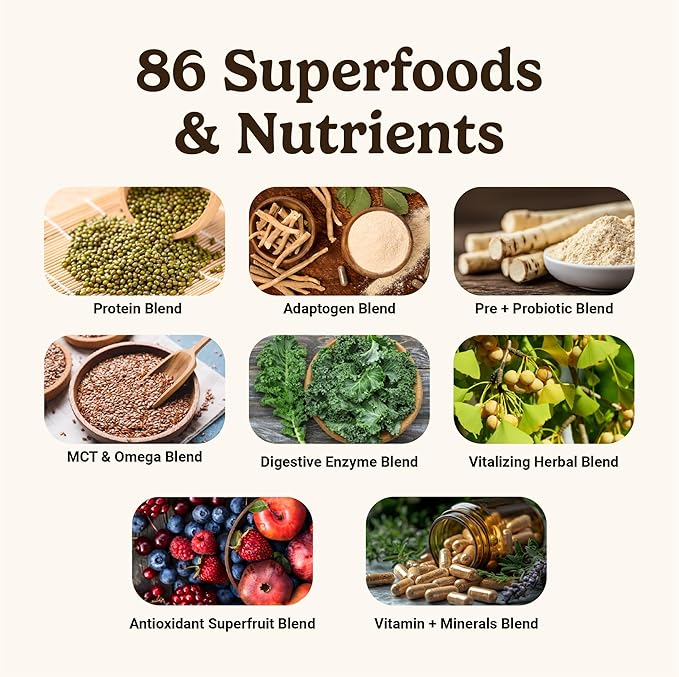 - All-in-One Daily Nutrition: Get your protein, superfoods, multivitamin, probiotics, and adaptogens in one convenient shake—no complicated meal prep or pill stacks
