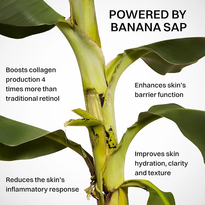 - Patented Banana Sap Active: Features our patented Balbisiana banana sap, a breakthrough botanical clinically shown to outperform retinol in collagen synthesis—safely supports skin renewal, improving the appearance of firmness, and elasticity.