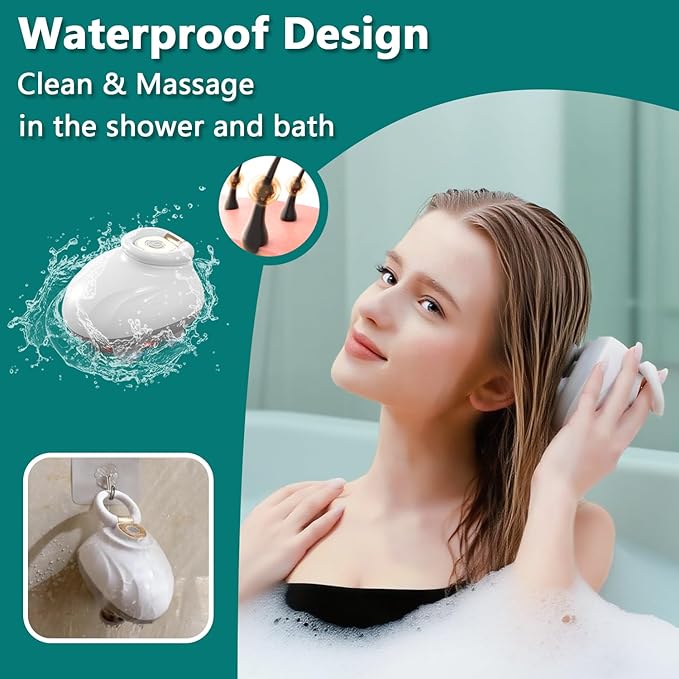 - [Waterproof & Versatile Use] This waterproof head massager is ideal for both wet and dry use. You can use this massager while showering or washing your hair to relax and cleanse your scalp. Besides the head, it can be used on various parts of your body, such as shoulders, back, and legs to relieve muscle tension and stress. This scratcher massager is also great for pampering your pets!
