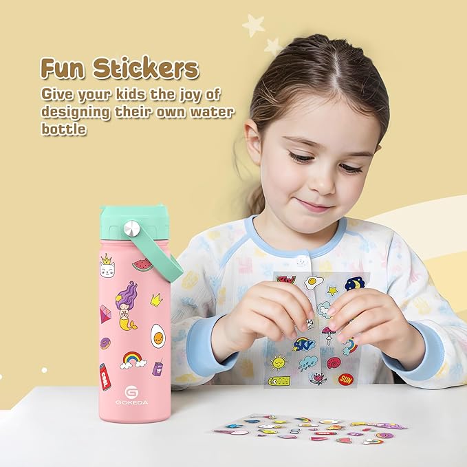 - Fun Stickers: The fun stickers designed specifically for kids instantly make their water bottles lively and interesting. By decorating the straw cup, children not only enhance their hands-on skills but also foster creative thinking, making drinking water a fun and enjoyable experience.