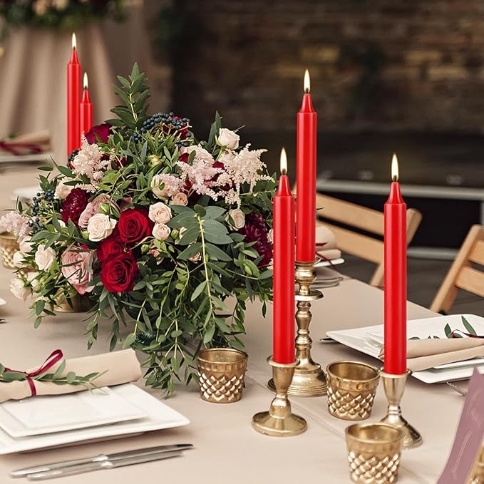 - [Portable Size Mini Candlestick] Our Red candle sticks are ideal decoration since they fit in most candle holders. Each candlestick measures approximately 4" tall and 0.5" wide. High value pack of 40!