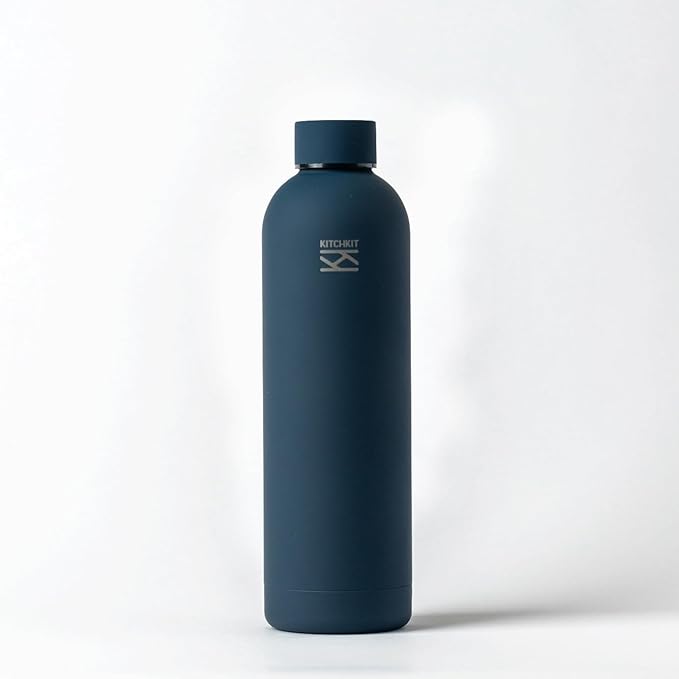 Insulated Stainless Steel Water Bottle 25oz/750ml Vacuum Flask, Leak-Proof Lid, Hot & Cold Retention, Minimalist White Design, Reusable Eco Bottle (Navy Blue)