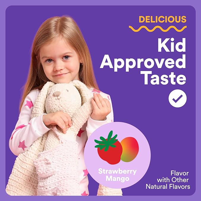 - DELICIOUS TASTE & KID-APPROVED: Strawberry Mango Flavor with Other Natural Flavors. Kids 4 years and older, start with 1 gummy and give up to 2 gummies as needed 30 minutes before bedtime, for occasional use. Chew each gummy thoroughly. May be paired with other SmartyPants formulas such as our kids multivitamins.