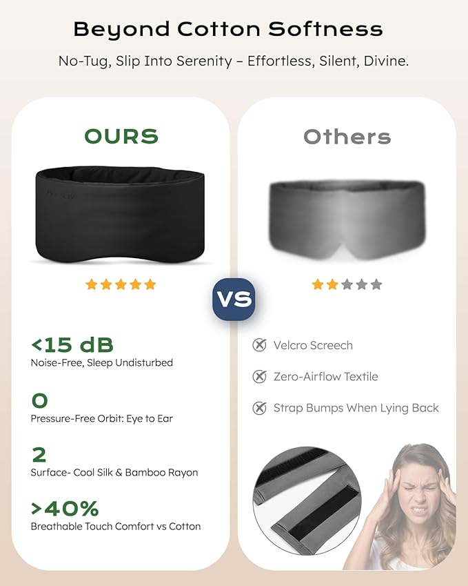 - Adjust in Silence, Dream Without Disturbance! Engineered with Tear-Free Silent-Adjust Straps – no velcro rips, no buckle clicks! Glide the straps seamlessly for a custom fit (fits all head sizes 20-28in). Perfect for light sleepers, co-sleeping couples, or frequent flyers. Finally, zero noise adjustments in pitch darkness