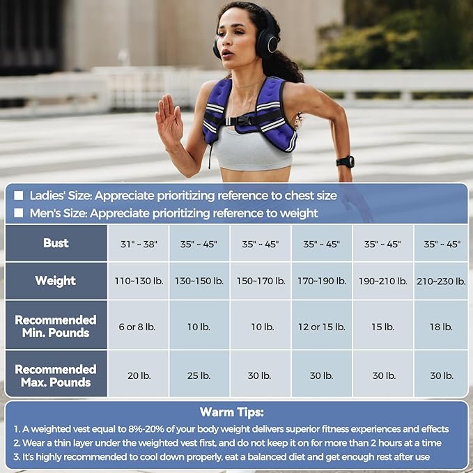 - 【Gradually Progressing】 Zeerun provides 8 different weights options (6lb/8lb/10lb/12lb/15lb/18lb/24lb/30lb), as the intensity of fitness increases, gradually choosing a heavier vest, even beginners can grow into fitness experts.