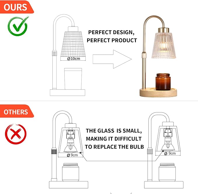 - Brand Quality and FITS ALL CANDLE SIZES: The fragrance electric wax melt warmer is compatible with multiple candles of different heights.The height from the base to the lampshade is adjustable, range from 4 inches to 5.7 inches, It can hold jar candles up to 6 inches in height. MEIXISUE brand produces high-quality materials and high-quality wooden base, anti slip pads under the base to ensure its stability.