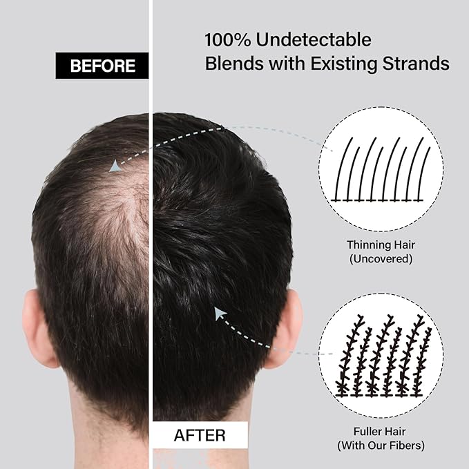 - 10-Second Scalp Coverage & Natural Blend: Hair fibers seamlessly integrate with your natural hair, instantly concealing thinning areas and sparse patches. Mineral-based colorants ensure perfect shade matching for undetectable, realistic thickness—no clumping or artificial shine. Results visible in seconds, lasting through daily activities.