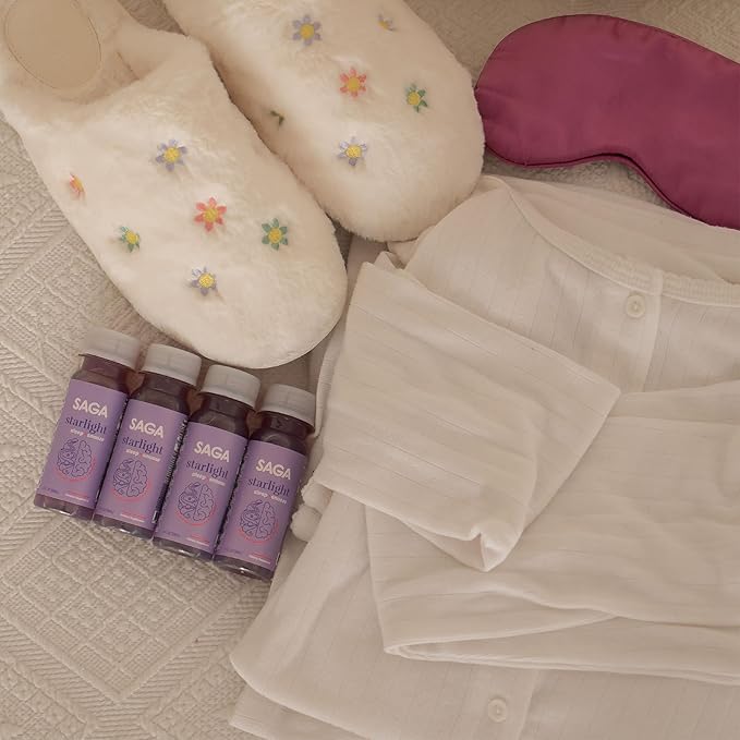 SAGA Starlight Organic Sleep Shots – 2oz Natural Sleep Aid with Melatonin, Reishi, Valerian Root, Ashwagandha, Chamomile – Sugar-Free, Zero Calories, Mushroom Drink