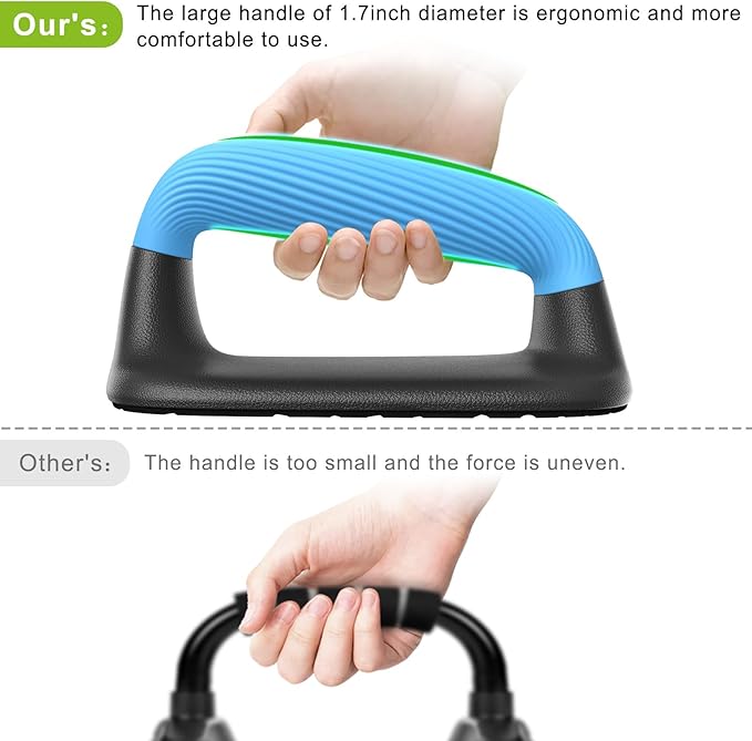 - Comfortable Handle: The handles of push-ups are made of high-quality soft plastic, protect your hands, it’s not easy to get calluses. The diameter is 1 3/5 inches, and the grip is comfortable and ergonomic