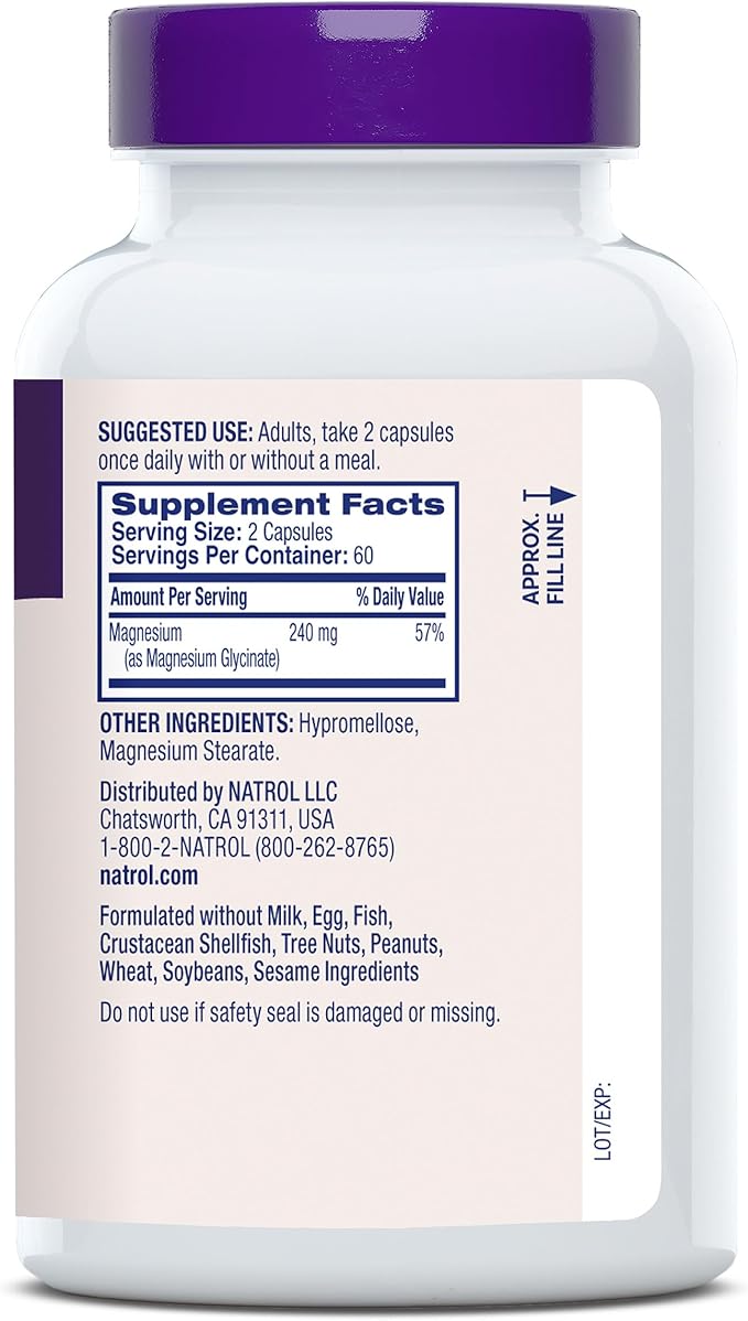 Natrol Magnesium Glycinate 240 mg, High Absorption Magnesium Supplement for Healthy Sleep and Body, 120 Capsules, Up to a 60 Day Supply