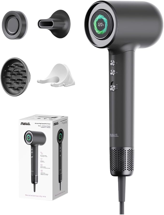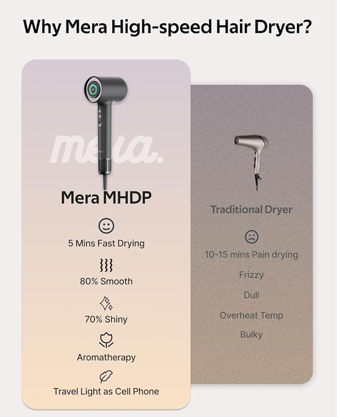 - BI-IONIC TECHONOLOGY: Mera combines negative and positive ions to remove static effectively to ensure hair without frizz, achieves 80% smoother hair and 70% more shine, stay away from heat-damage.