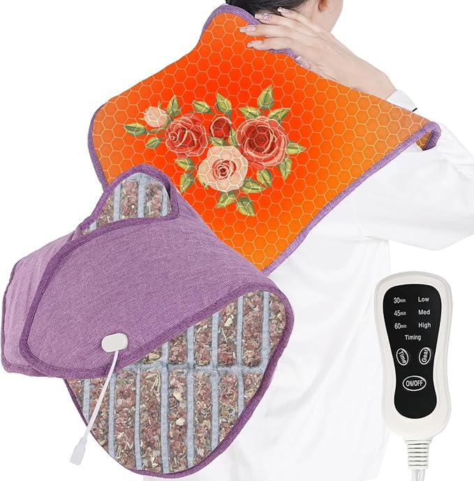 WGL&HJ Far Infrared Graphene Heating Pad for Neck,Shoulder,Back Pain Relief,Himalayan Pink Salt and Natural Herbs Heat Herbal Aromatherapy,Hand Embroidered Roses,Gifts for Women Men Moms Dad
