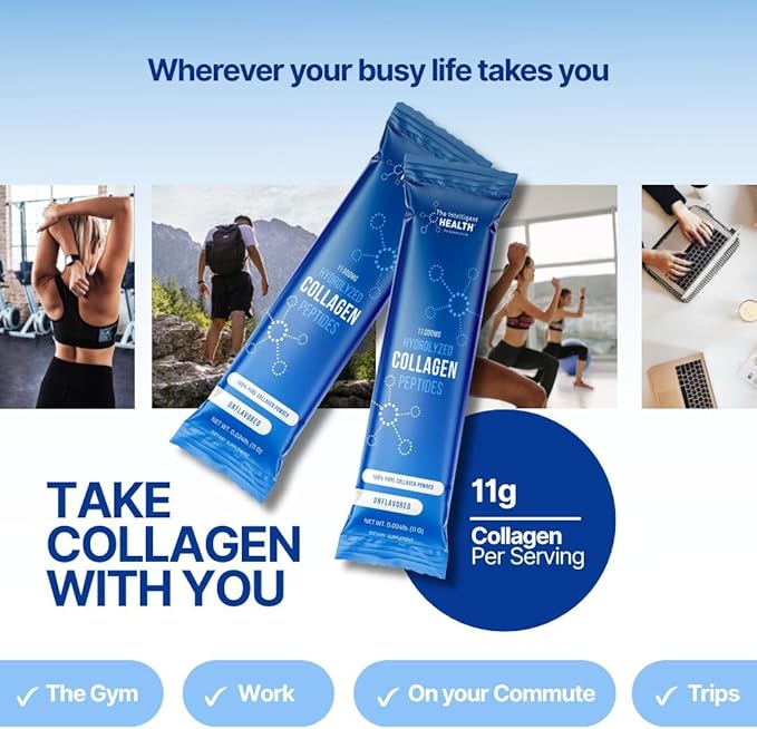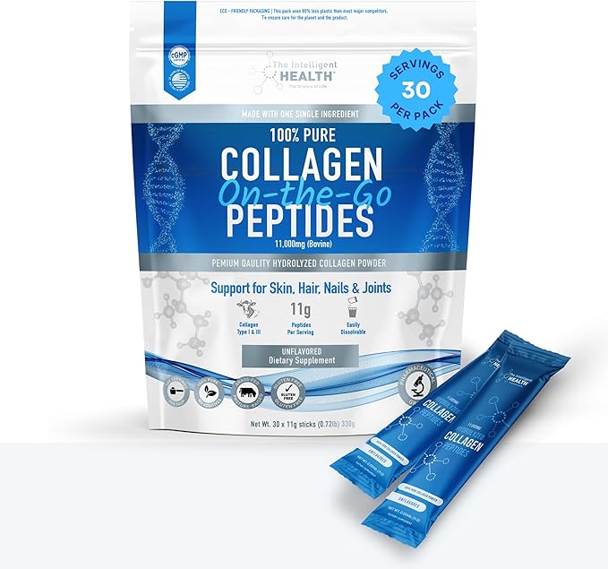 The Intelligent Health Hydrolysed Collagen Powder (Bovine) - High Protein Grass Fed Unflavoured Peptides - Collagen Supplements for Women | Gluten Free, Paleo & Keto Friendly (Stick Pack (30))