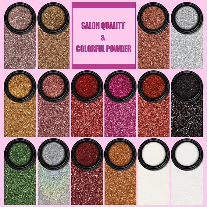 - PACKAGE CONTAINS: 16 pcs(each 1gram) Artdone Chrome Nail Powder, 2 for white based chrome nail mirror pigment powders, 14 for colored mirror chrome powder. They needs to be used with gel nail polish and no wipe top coat