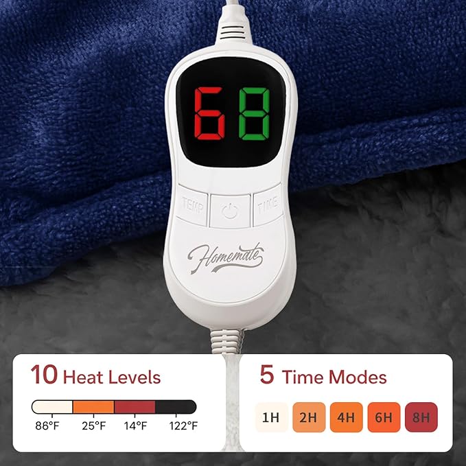 - Easy Control & Versatile Use:This electric blanket is very easy to operate with a single controller to adjust the temperature and set the time. Our electric throw blanket 10-20lbs comes with a 9.5inch power cord, which is very easy to move around and can be easily used in your bedroom, living room or office. This electric heated blanket also can be used as a heated shoulder pad or knee blanket to relieve your day's fatigue, a thoughtful and exquisite perfect gift for your loved ones!