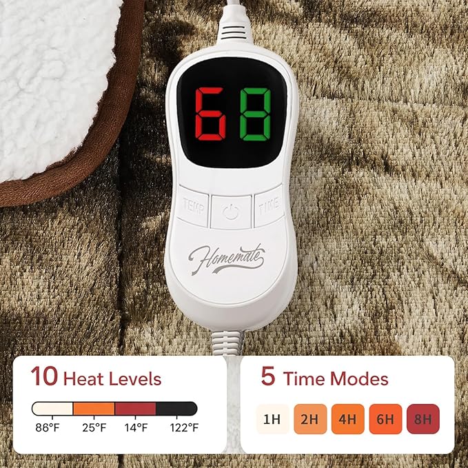 - Easy Control & Versatile Use:This electric blanket is very easy to operate with a single controller to adjust the temperature and set the time. Our electric throw blanket 10-20lbs comes with a 9.5inch power cord, which is very easy to move around and can be easily used in your bedroom, living room or office. This electric heated blanket also can be used as a heated shoulder pad or knee blanket to relieve your day's fatigue, a thoughtful and exquisite perfect gift for your loved ones!