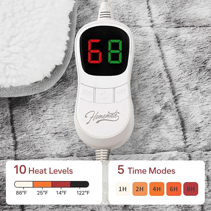 - Easy Control & Versatile Use:This electric blanket is very easy to operate with a single controller to adjust the temperature and set the time. Our electric throw blanket 10-20lbs comes with a 9.5inch power cord, which is very easy to move around and can be easily used in your bedroom, living room or office. This electric heated blanket also can be used as a heated shoulder pad or knee blanket to relieve your day's fatigue, a thoughtful and exquisite perfect gift for your loved ones!