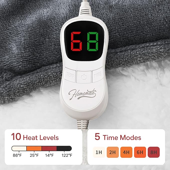 - Easy Control & Versatile Use:This electric blanket is very easy to operate with a single controller to adjust the temperature and set the time. Our electric throw blanket 10-20lbs comes with a 9.5inch power cord, which is very easy to move around and can be easily used in your bedroom, living room or office. This electric heated blanket also can be used as a heated shoulder pad or knee blanket to relieve your day's fatigue, a thoughtful and exquisite perfect gift for your loved ones!