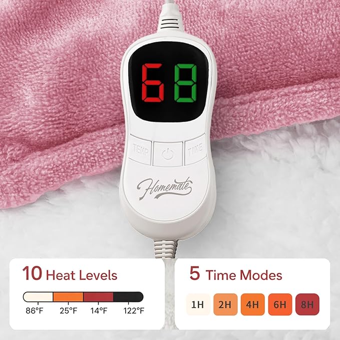 - Easy Control & Versatile Use:This electric blanket is very easy to operate with a single controller to adjust the temperature and set the time. Our electric throw blanket 10-20lbs comes with a 9.5inch power cord, which is very easy to move around and can be easily used in your bedroom, living room or office. This electric heated blanket also can be used as a heated shoulder pad or knee blanket to relieve your day's fatigue, a thoughtful and exquisite perfect gift for your loved ones!