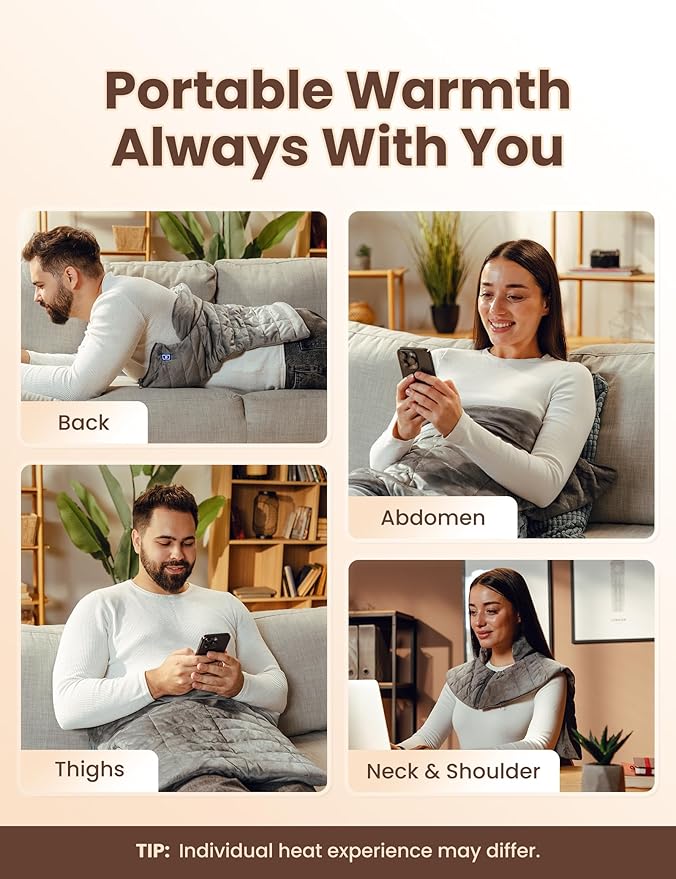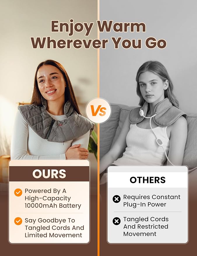 - Truly Cordless & Portable Enjoy full mobility with our portable heating pad powered by a high-capacity 10000mAh battery. Say goodbye to tangled cords and limited movement—perfect for home, office, or on-the-go heat therapy.